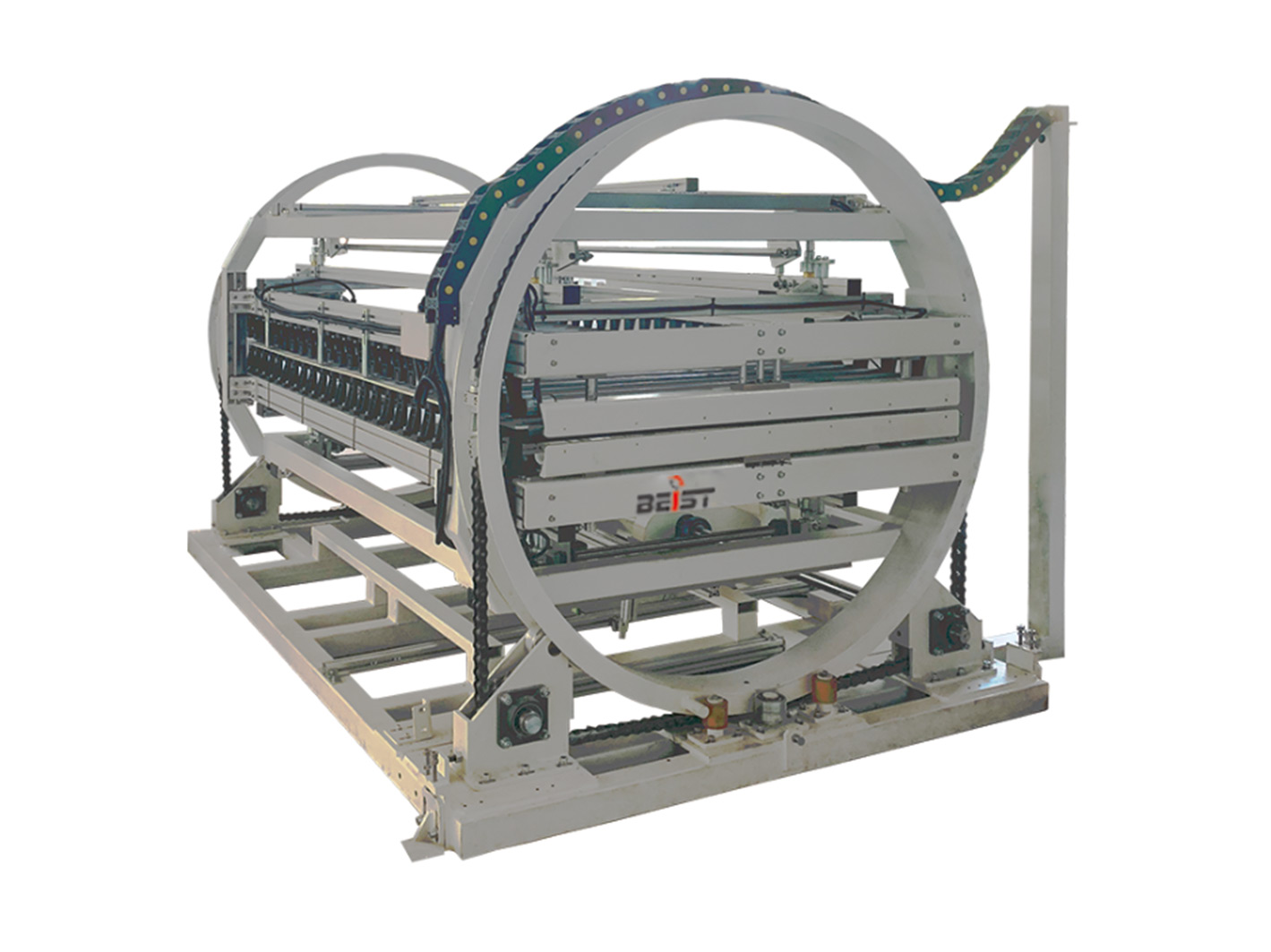 Automatic flip machine is used in matching works for the 180 degree automatic flipping of all kinds of panel workpieces, such as plane door boards, cupboard side panels, calcium silicate boards, magnesium oxide boards and fiber cement panels etc.