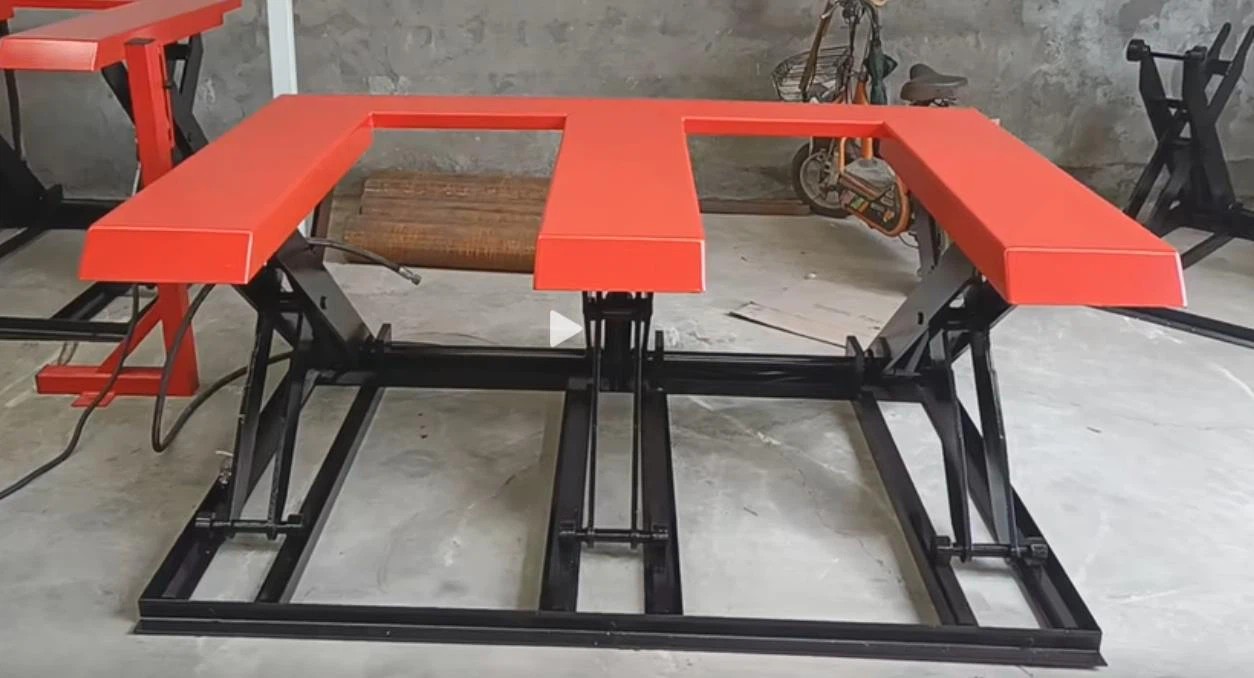 Lift Table is one of our main product series, We manufacture individually according to customer requirements and on-site conditions.Here we will start to introduce from E Shape Lift Table or we call it Scissor lift table, E-shape platform or Lift table with E-shaped platform. It is used to lift heavy loads at the workplace in an ergonomic and safe way, specially for handling pallets, no need for a pit or load ramps. These lift tables have a centre support to facilitates the handling of pallets so they can support an improved working posture and reduce physical strain. Workers will minimise sick leave by working more easily than on the back. You can use our products to create optimised workstations with greater mobility and more effective handling, even under heavy daily loads. Finally create a workplace with increased occupational safety.